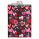 Black Pink Red Hearts Love Pattern Hip Flask