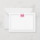 Simple Pink and White Script Calligraphy Name Monogram Note Card. Add a touch of girly elegance to your stationery with this chic and minimalist notecard. Featuring a crisp white background, it showcases a flat pink initial at the top centre (note: the pink is a smooth, non-shimmering colour, not foil). The notecard is framed with a thin black border around the front, offering a refined and modern touch. Perfect for personal notes, thank you cards, or special occasions like birthdays, quinceañeras, bat mitzvahs, bridal showers, and more, this notecard is ideal for anyone who loves a feminine, stylish design. Whether as a gift or for personal use, it blends simplicity and elegance, making it a timeless addition to your stationery collection.