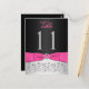 This black, pink, and silver floral table number postcard with a hot pink FAUX ribbon and jewels matches the Bat Mitzvah invitation shown below. ***You must change the number 11 to each of the table numbers you need, add it to your cart, and then return and repeat the process until you have all the individually numbered cards that you need in your cart. If you need any other matching items, please email niteowlstudio@gmail.com.