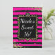 Black & Pink Stripes Gold Foil Party Invitations