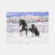 Black Pinto Piebald Gypsy Vanner Draught Horse Trotting in Snow.