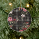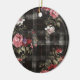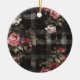 Black Plaid Red Roses Ceramic Ornament