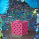 Black polka crosses on fuchsia favour box