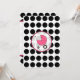 A unique, futuristic baby shower invitation featuring a black polka dot background (over white) with hot pink trim. Personalise the black and pink text with details of your event. Opposite side is solid matching polka dot desigm with a pink baby carriage inside a matching circle shaped frame.