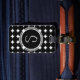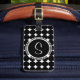 Black dots in close quarters create a secondary pattern of white stars. A large black circle is surrounded by white lines, while a single white initial graces the centre.