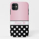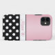 Custom iPhone 5 case personalised with your name, and designed with white polka dots over black, and a gradient baby pink.