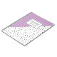 Modern notebook featuring black polka dots pattern and lilac accent. You can customise this notebook for school, home or office use. This stylish notebook will be perfect as a gift.
