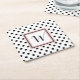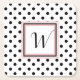 Stylish pulp board paper coasters done in a retro black and white polka dot pattern. A pink, black and white square, in the middle of the coaster, has a black one letter monogram ready to personalise. Great for anytime use and makes a nice gift idea for her.