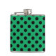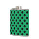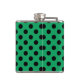 Black polka dots on fresh green hip flask