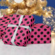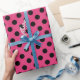 Black polka dots on fuchsia wrapping paper