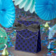 Black polka dots on navy blue favour box