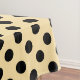 Black polka dots on pale yellow tablecloth