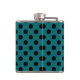 Black polka dots on teal hip flask