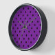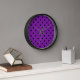 This wall clock features a classic design of black polka dots on a violet purple background.