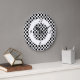 Black Polka Dots on White Numbers Clock