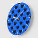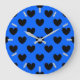 Black polka hearts on blue large clock
