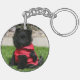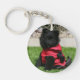 Black Pomeranian Puppy Looking at Camera Key Ring