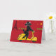 Fun poodle card to send your friends has a black poodle on bright red background with the Eiffel Tower.