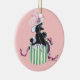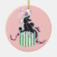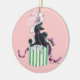 Retro design black poodle in a hatbox Christmas tree ornament. If you need help to personalise contact greer at greerdesign@aol.