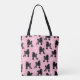 Cute Black Poodles Pattern with Bows and Hearts on Delicate Swirl Pattern a Soft Pink Background Tote Bag.