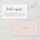 Ask guests to bring a book instead of a card with this elegant and simple book request card. It features a whimsical script and simple typography. This books for baby card is perfect for any baby shower theme and season. Personalise by adding your own details. You can further personalise the back of the card by changing the blush pink background to a photo or any other image.