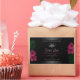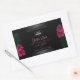 Make a lasting impression with this elegant and exotic product label design featuring pretty wine red hawaiian flowers and green palm leaves on a black background. A cool palm leaf shadow matching to the shimmery border frame.
