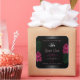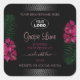 Make a lasting impression with this elegant and exotic product label design featuring pretty wine red hawaiian flowers and green palm leaves on a black background. A cool palm leaf shadow matching to the shimmery border frame.