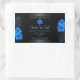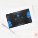 Black Product Label with Sky Blue Hawaiian Flowers