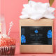 Make a lasting impression with this elegant and exotic product label design featuring pretty sky blue hawaiian flowers and palm leaves on a black background. A cool palm leaf shadow matching to the border frames.