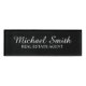 This name tag features name in white classic script font style and title in white professional serif font style on black background.