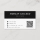 Modern black minimalist business card design with simple templates fields for custom logo, name, title or company name, contact information and QR code.
