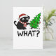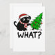Featuring a cute black pug in a Santa hat and scarf next to a fallen Christmas tree — it perfectly captures the playful chaos of the season.