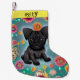 Black Pug Christmas Stocking with name.