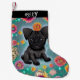 Black Pug Christmas Stocking with name.