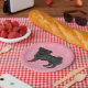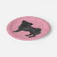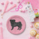 Black Pug Dog Cartoon Mops Love Heart Pattern Pink Paper Plate