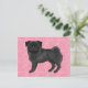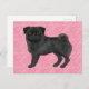 Black Pug Dog Cartoon Mops Love Heart Pattern Pink Postcard