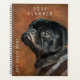 Black Pug Dog Portrait. Get Stuff Done Motivational and Inspirational quote/saying. A gorgeous and handsome black Pug Dog digital oil painting portrait. Wearing a striped shirt and giving a side gaze/whale eye, with a dark grunge brown background. Rich neutral, earth-toned colours with a rustic and distressed look. Pugs have a remarkable and charming personality, despite its small size. Ready to be personalised with your name on the back, and the year on the front. Fully customisable.