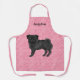 Black Pug Dog Cute Mops And Pink Hearts With Name Apron