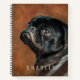 Black Pug Dog Portrait.A gorgeous and handsome black Pug Dog digital oil painting portrait. Wearing a striped shirt and giving a side gaze/whale eye, with a dark grunge brown background. Rich neutral, earth-toned colours with a rustic and distressed look. Pugs have a remarkable and charming personality, despite its small size. Ready to be personalised with your name on the front and the year on the back. Fully customisable.