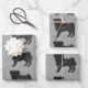 Black Pug Mops Dog Breed Design Pattern On Grey Wrapping Paper Sheet