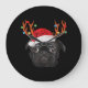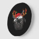 Black Pug Santa Christmas Reindeer Christmas Light Large Clock
