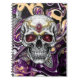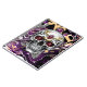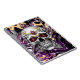 Día de Muertos or Halloween sugar skull with purple, black and gold details and fluid art abstract background.