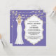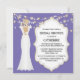 Beautiful faux dangling string lights appear to glisten and shine against a lilac purple background on which a blonde caucasian woman wearing a white wedding dress that has a large faux diamond at the centre of her back appears. Next to her is a scallop shaped frame edged with gold that has templates for your personalised wording.The overall feel is elegant and chic. This is ideal for summer; spring; winter and fall bridal shower or special anniversary celebration events. Feel free to delete or move the templates around and to change the size and style of the fonts if preferred.