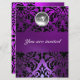 BLACK & PURPLE DAMASK GEM STONE MONOGRAM ice Invitation