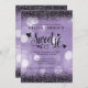 A gorgeous Sweet 16 birthday party invitation design by The Spotted Olive™ features a purple bokeh background with black digital glitter confetti border and the top and bottom of the invitation and little hearts with the words "Sweet16" stylishly typeset filled with an image of digital black glitter. PLEASE NOTE: THIS DESIGN ONLY FEATURES A PRINTED IMAGE OF GLITTER; THERE IS NO PHYSICAL GLITTER USED OR INCLUDED; THERE ARE NO EMBELLISHMENTS. Copyright 2021-Present | The Spotted Olive™ | All Rights Reserved