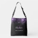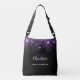 Black purple glitter monogram initials glamourous crossbody bag