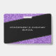 Elegant, girly black and purple glitter school teacher hall pass. Horizontal layout. Personalise it by adding your name and classroom number and school name. Very feminine, girly, glam design. Great for women who are elementary or middle school instructors.