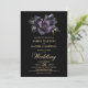Make a statement with our black wedding invitation featuring a purple and grey floral motif. This design sets the tone for an unforgettable celebration. The customisable text allows you to effortlessly add the bride and groom’s names, wedding date, and the necessary details of your celebration. A variety of paper types and corner styles are available for your unique invitations, along with the option to download if you prefer a digital format.
