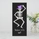 Start dancing with this skeleton for a Halloween celebration with this customisable invitation for a party or other event. The front of the invitation features a whimsy skeleton that is dancing a jig on a black background with the words "Dance with Me" in a ghoulish font. You can change the font to one of your choice. The back of the invitation is black with a skeleton dancing and "You're Invited" for a template for you to customise for your Halloween event. The hand painted original art features dancing skeletons with a purple top hat on their skulls and is in the colours black, white and purple. Check for my other products with this art for goulish products for Halloween including greeting cards, tee shirts, posters, wall decals, electronic device cases and more. Fully customisable for personalisation. The original art is by Phyllis Dobbs who wishes you a happy and ghoulish Halloween.
