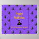 Wish your friends and neighbours a Happy Halloween with these broomstick riding witches and classic witch hat that say Happy Halloween, No tricks just treats. Text, font and colours can all be changed to add a personalised touch.